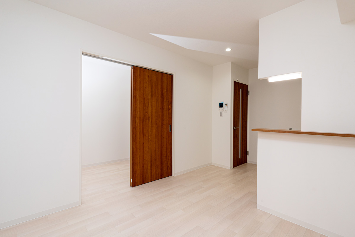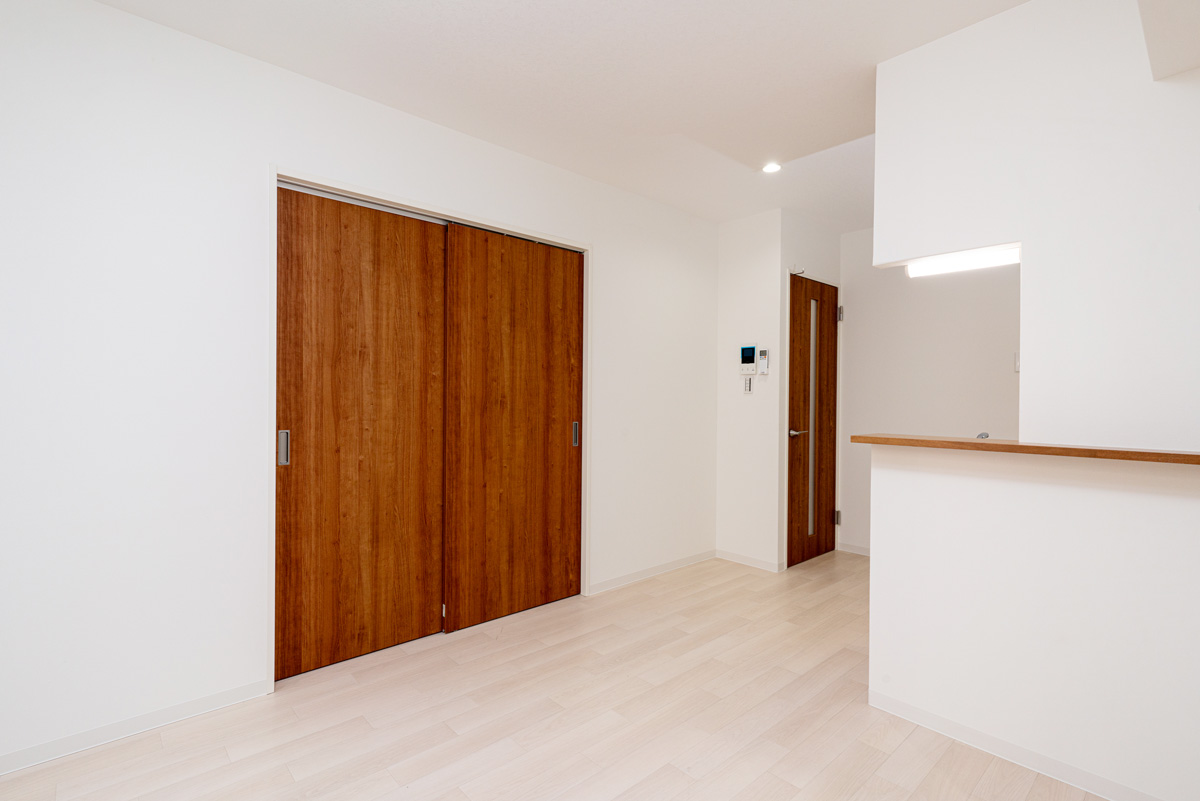 エハコ日暮通|シックなブラウンの引き戸の奥は、約3.0帖の洋室です。