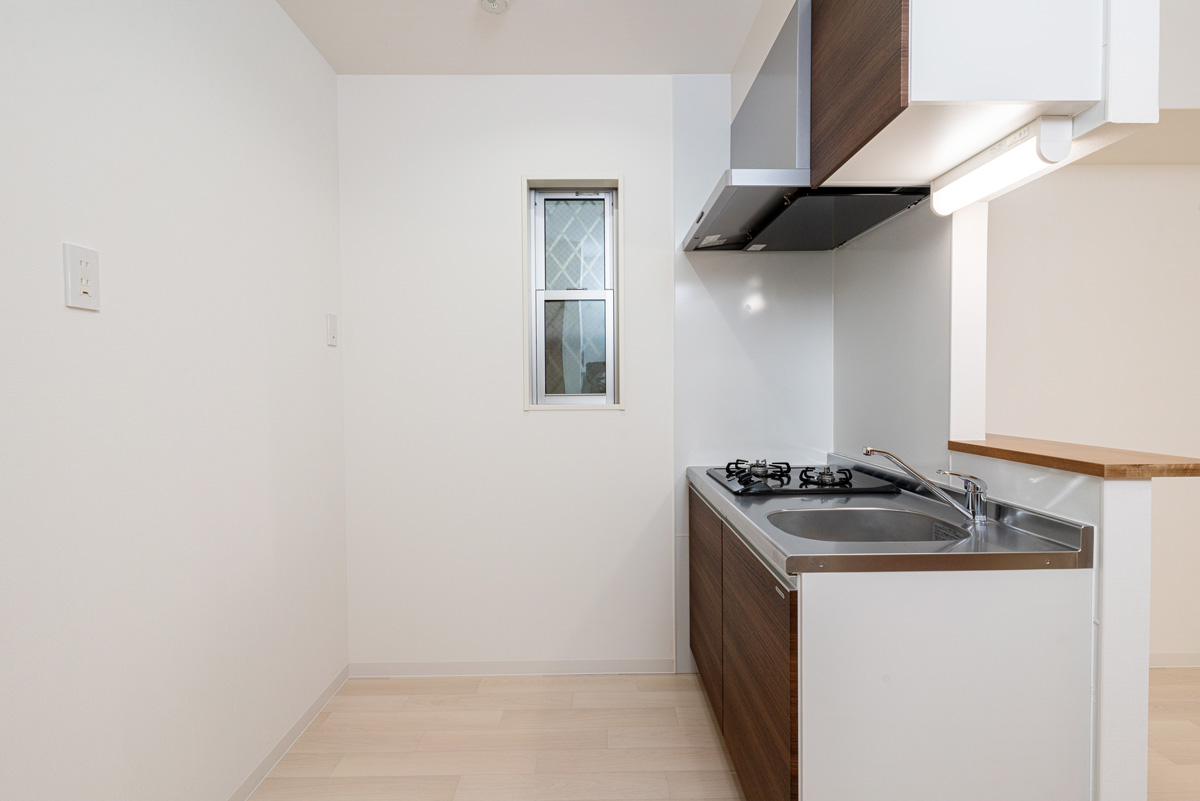 エハコ日暮通|対面式のシステムキッチン|2口コンロです