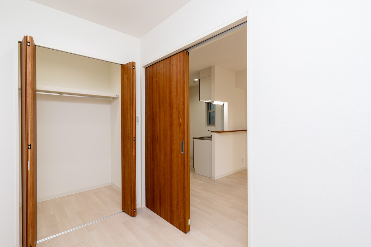 エハコ日暮通|ウォークインクローゼットの扉を開いて、撮影した写真です。