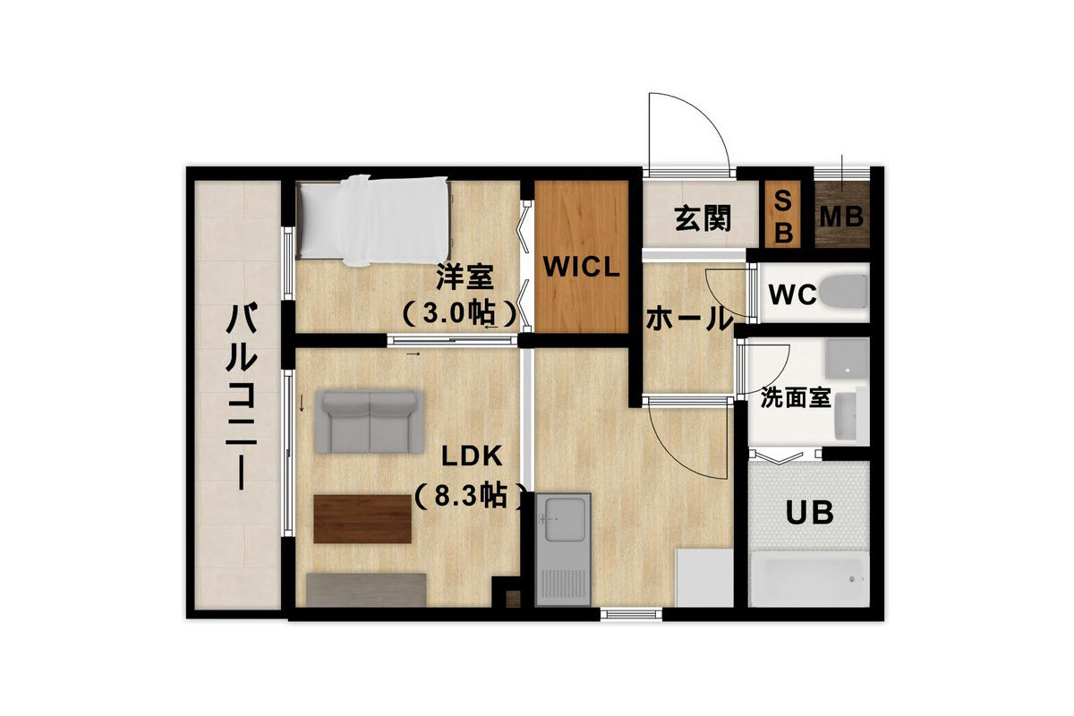 エハコ日暮通|約3.0帖の洋室には、ウォークインクローゼットがございます。
